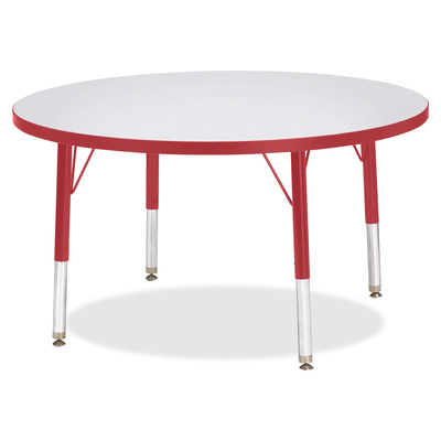 Jonti-Craft Berries 6488JCT008 Round Activity Table, T-Height (11"-15" Adjustable Height), 36" Diameter, Gray/Red/Gray