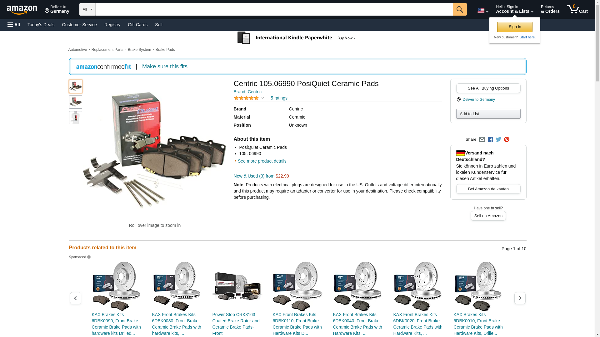 Centric 105.06990 Posi Quiet Premium Ceramic Disc Brake Pad Set For Select Buick, Cadillac, Chevrolet, Pontiac, and Oldsmobile Model Years