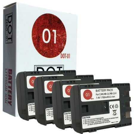 <b>This DOT-01 Package includes:</b> <br /> <br /> 4x DOT-01 Brand with this 1700 mAh replacement Canon NB2L battery Canon NB-2L Replacement Rechargeable Batteries made with Premium Japanese Cells <br />5 Year DOT-01 Battery Warranty <br /> This DOT-01 Package was made to compliment the Canon Elura 85 Camcorder <br /> <br /> <b>More about DOT-01 Products:</b> <br /> <br /> DOT-01 products are made with you in mind. We have done our best to make a reliable and an affordable product for both the beginner and professional photographer alike. Whether you are heading out on an expedition to the West Indies or beginning a new chapter of your life at home, <b>DOT-01 is behind you</b> with the power you need to catch every moment. <br /> <br />We support you and your new batteries for FIVE full years after your purchase date. If you want to drop a compliment our way, or if you have a comment for us, we are available five days a week for you. <br /> <br />Please Note: <br />If you are planning a trip somewhere extra COLD or HOT <i>(Dog sledding in the arctic circle, cycling down an active volcano, or whatever you are into these days)</i> Lithium Ion batteries have a much shorter lifespan in extreme weather, so please, plan accordingly!