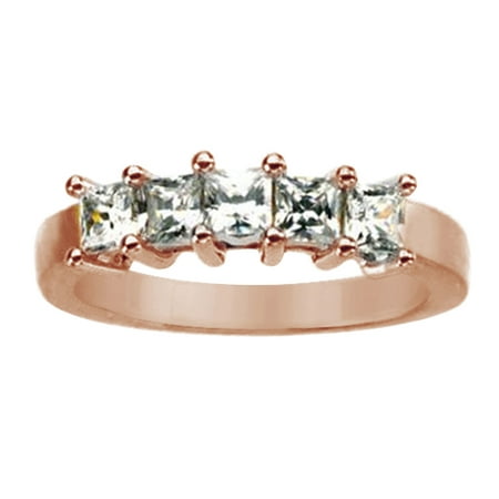 <ul> <li>Metal: Rose Gold With 14K Metal Stamp</li> <li>Stone: White diamond</li> <li>Stone Color: white, Stone Clarity: I2</li> <li>Total Carat Weight: 1 Ct, Stone Shape: princess</li> <li>Stone Setting Type: Prongs</li> </ul>