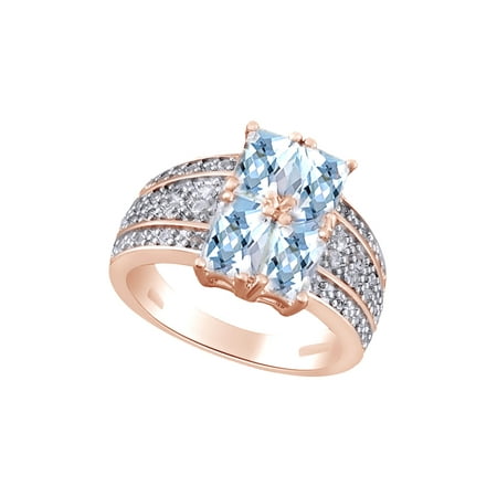<ul> <li>Metal Type : 14k Rose Gold Over Sterling Silver GUARANTEED, Authenticated with a 925 Stamp</li> <li>Simulated Aquamarine (Lab Created); Cubic Zirconia (Lab Created) With Clarity of VVS1-VVS2</li> <li>Stone Shape :- Emerald Shape & Round Shape</li> <li>Stone Setting Type : Prongs</li> <li>Stone Clarity :- VVS1-VVS2 , Stone Color :- Blue , White</li> </ul>