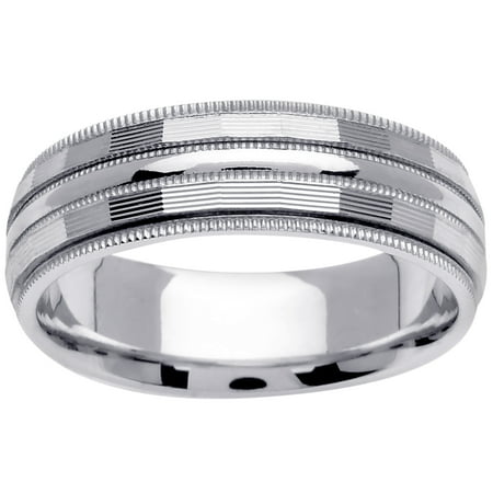 "14K White Gold Center Stripe Women's Wedding Band (6.5mm) Size-7"