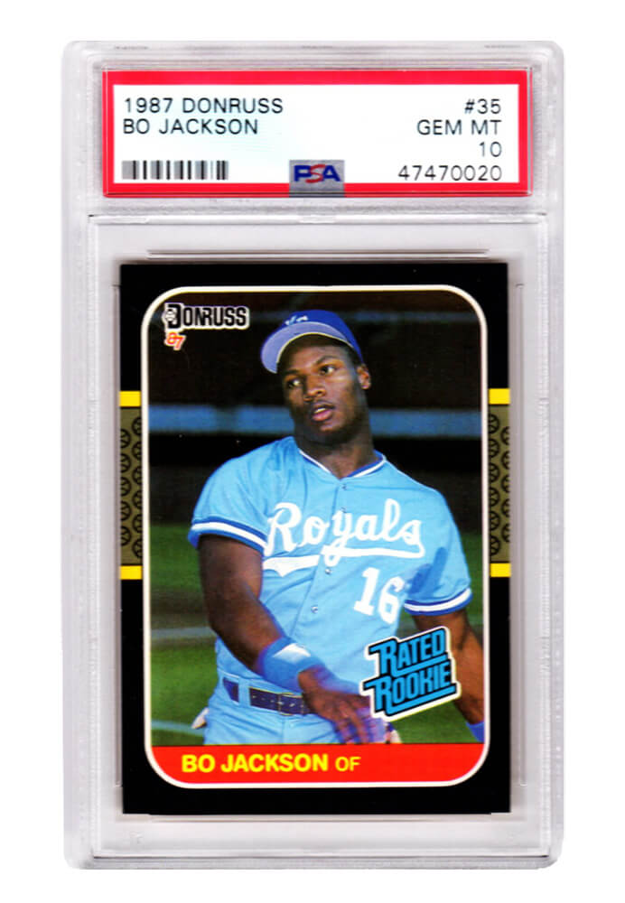 Schwartz Sports Memorabilia PS1BJ87D2 Bo Jackson Kansas City Royals 1987 Donruss Baseball No.35 RC Rated Rookie Card - P