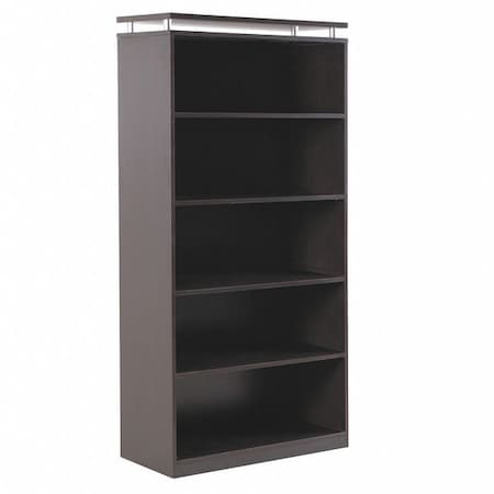 A contemporary classic with clean lines, elevated top and modern silver metalwork. Thermally fused woodgrain laminate is scratch-, dent- and water-resistant. Generous 14 1/8" usable depth accommodates all your storage needs. Leveling glides help compensate for uneven floors. Color: Espresso Material: Woodgrain Laminate Shelf Count: 5 Overall Height: 72". Unit of Measure : Each