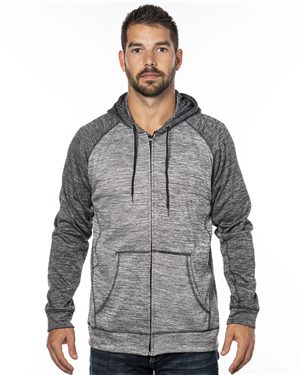 Burnside B12486993 Performance Raglan Full-Zip Sweatshirt, Green Camo & Black - Small