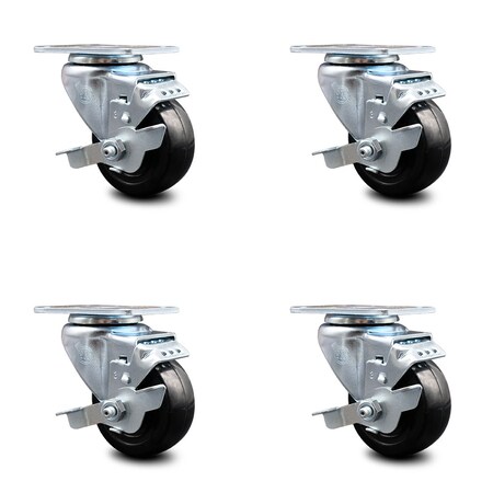 Swivel Caster Set of 4 with Brakes and 3 Inch Hard Rubber Wheel – 275 lbs. Capacity Per Caster – 3-1/8 Inch x 4-1/8 Inch Overall Top Plate–Service Caster Brand