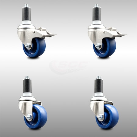 Service Caster Brand 3.5 Inch 316 Stainless Steel Light Duty Expanding Stem Caster Set 4 Solid Poly Caster Wheels and 1-3/8” Stems–1,200lbs. Total Cpty–2 Swvl/2 Swivel Casters with Total Locking Brake