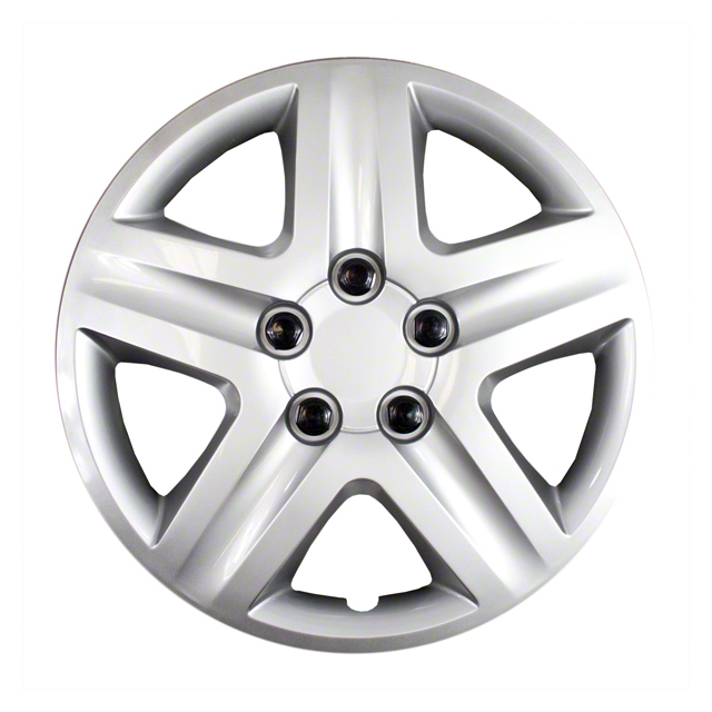 16", 5 Spoke, Silver, Plastic, Set Of 4, Spring Steel Clip