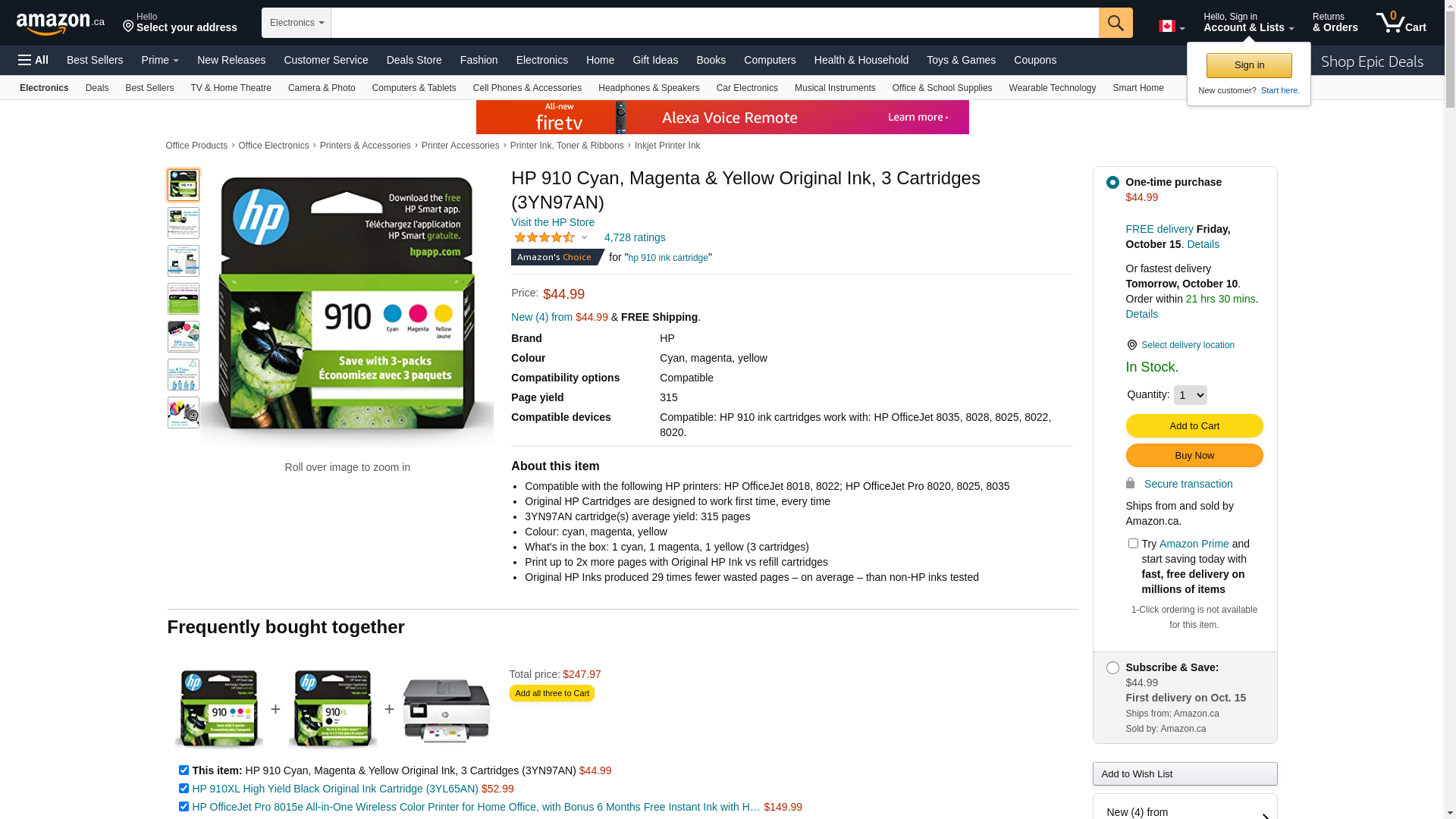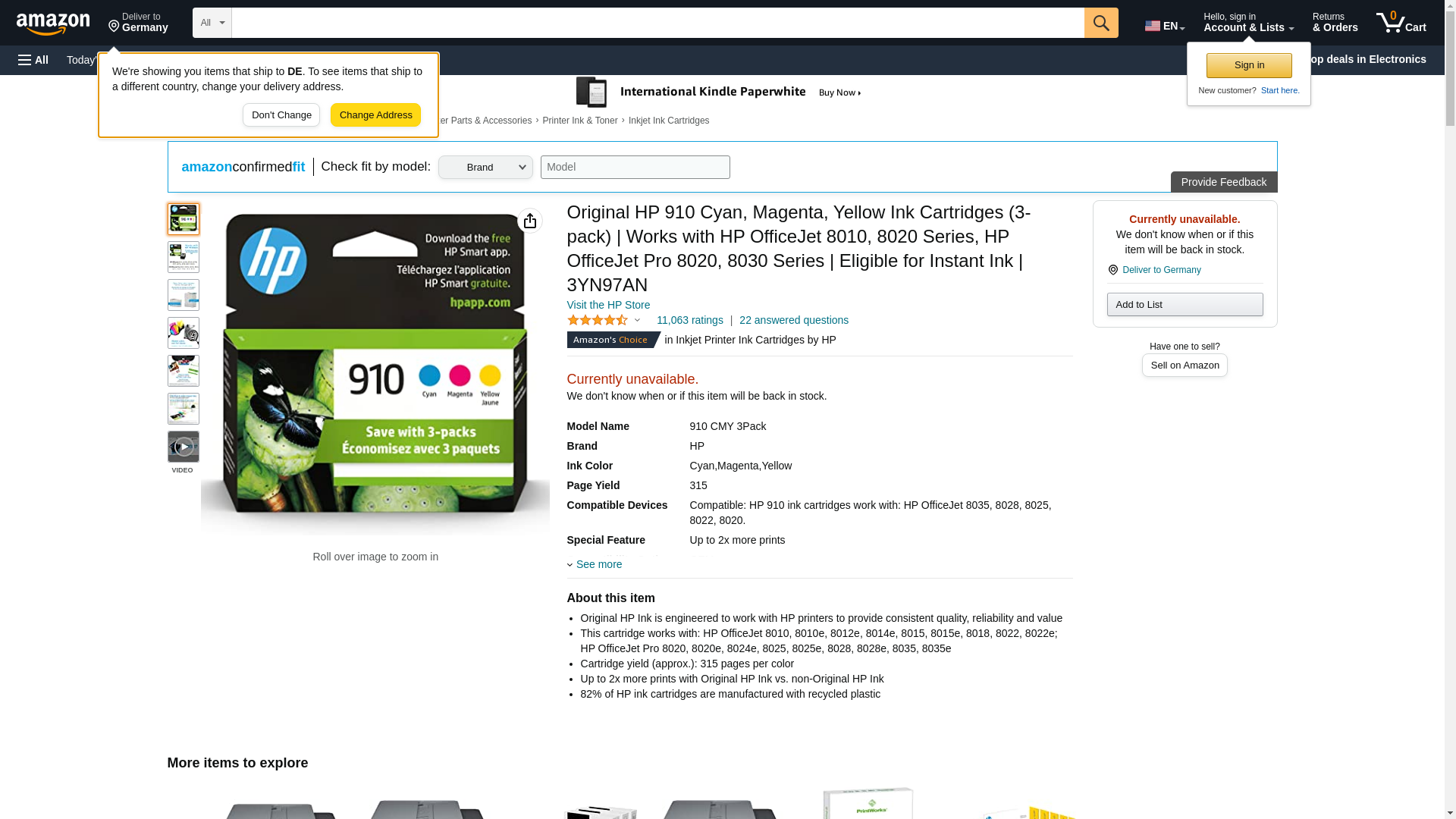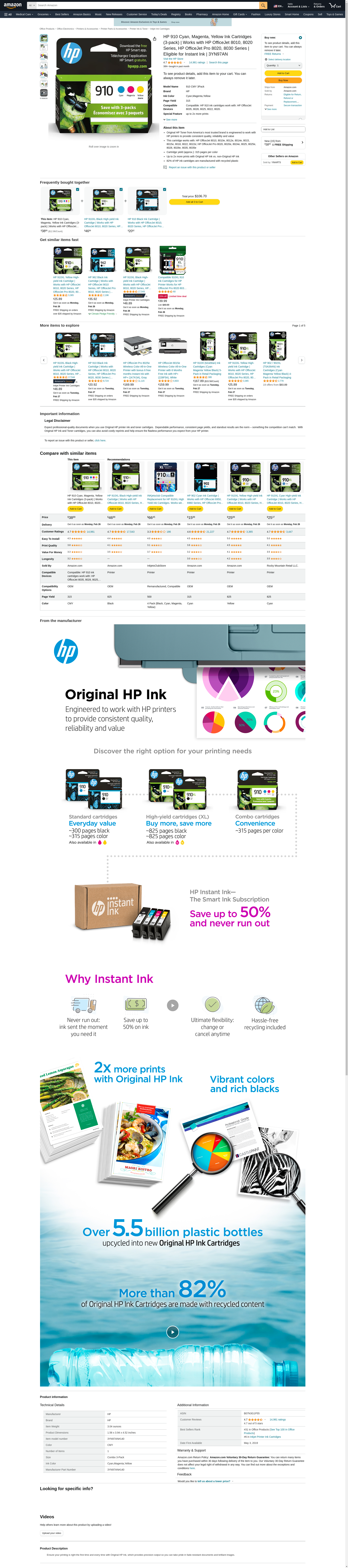 HP 910 Cyan, Magenta, Yellow Ink Cartridges (3-pack) | Works with HP OfficeJet 8010, 8020 Series, HP OfficeJet Pro 8020, 8030 Series | Eligible for Instant Ink | 3YN97AN