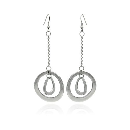 Stainless Steel Double Hanging Disc Hook Earring (Silver Palace, Inc.)