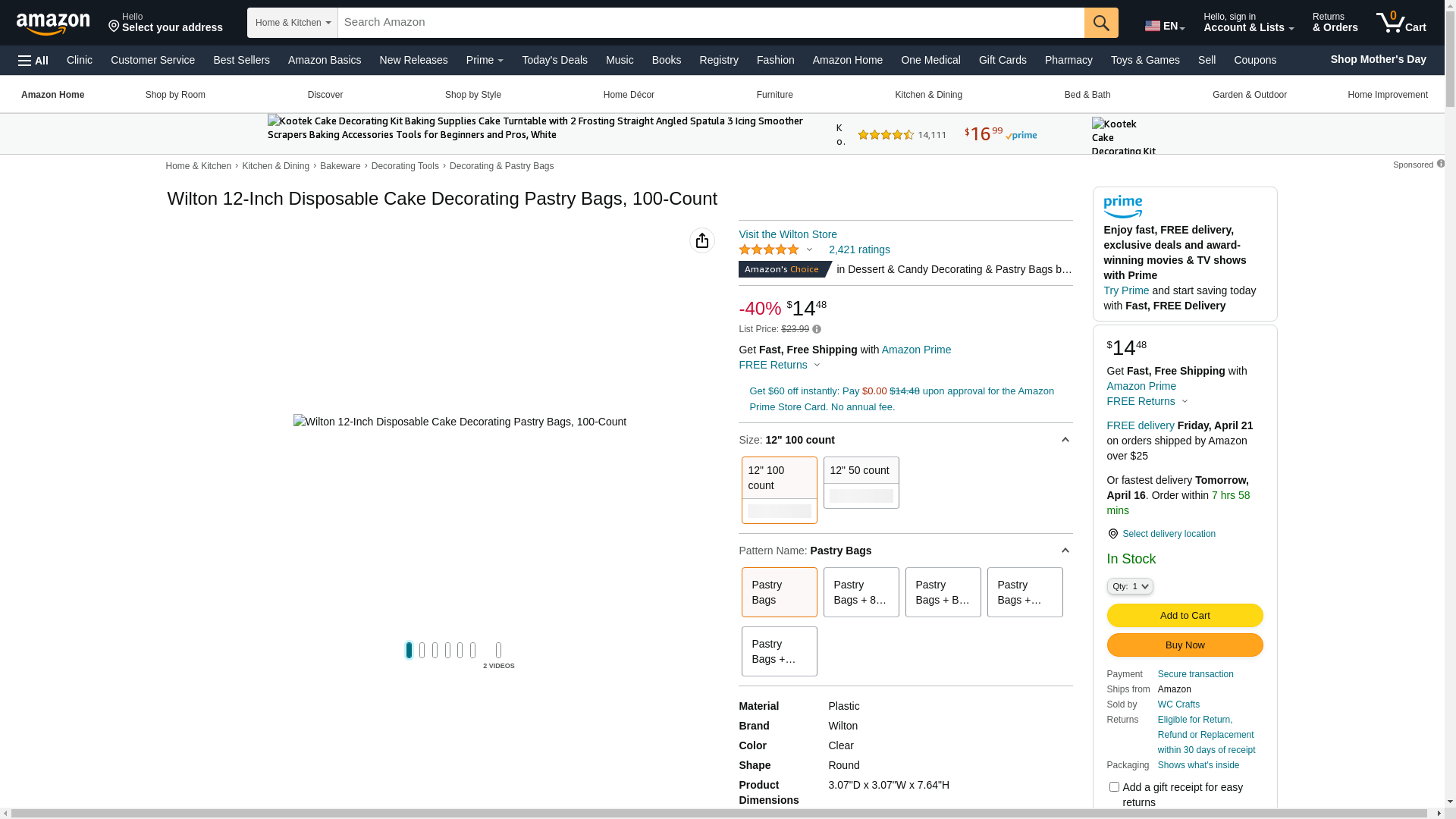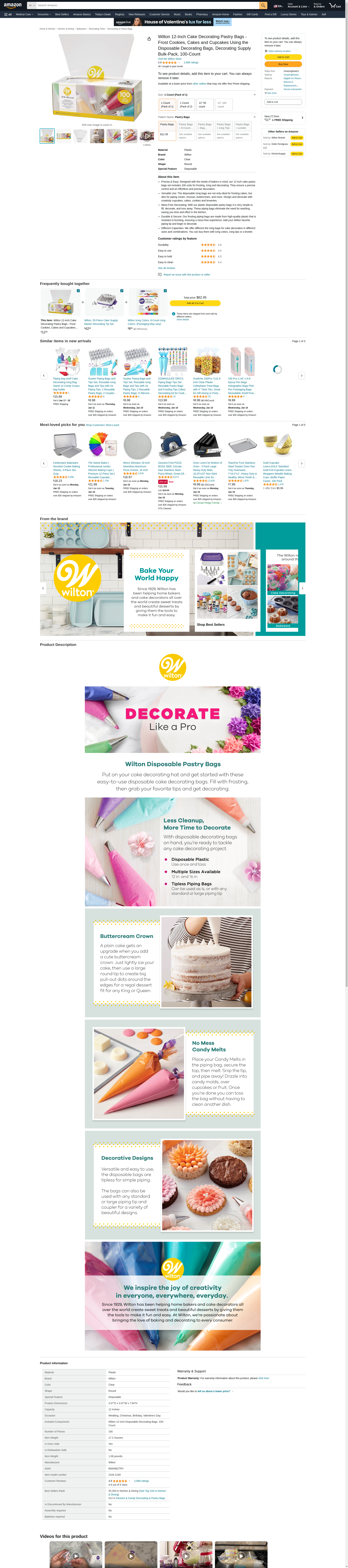 Wilton 12-Inch Disposable Cake Decorating and Pastry Bags, 100-Count: Maxedbuy.com