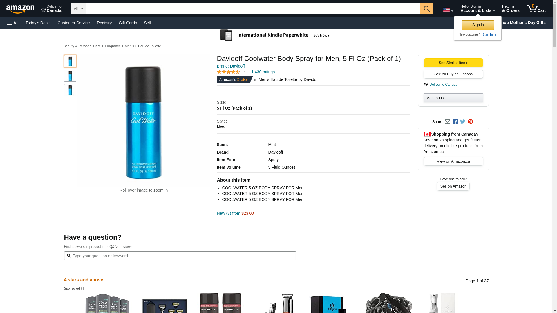 Davidoff Coolwater Body Spray for Men, 5 Fl Oz (Pack of 1): Maxedbuy.com