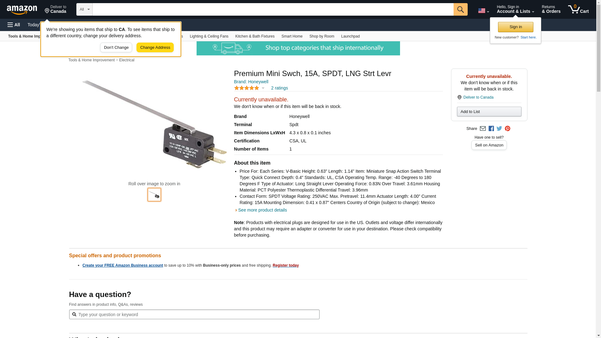 Premium Mini Swch, 15A, SPDT, LNG Strt Levr
