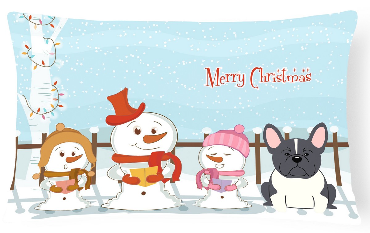 Carolines Treasures BB2343PW1216 Merry Christmas Carolers French Bulldog Black & White Canvas Fabric Decorative Pillow