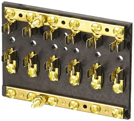 Use with SFE, AGC, or MDL fuses up to 20 Amp<BR>Common bus bar connects hot side of fuses for power feed<BR>Separate bus bar for ground or unfused common hot feed<BR>Heavy duty black molded base<BR>Brass fuse clips, 8-32 stud terminals for power/ground connection