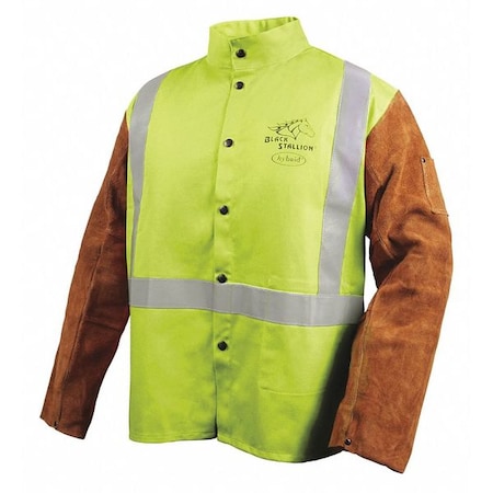 Black Stallion JH1012-LM Cotton/Cowhide Welding Jacket with Pass-Through, 30" 9 oz, Lime, 2X-Large
