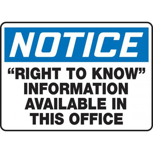 Order MCHM824XT10 by Accuform OSHA Notice Safety Sign "Right To Know" - US Mega Store