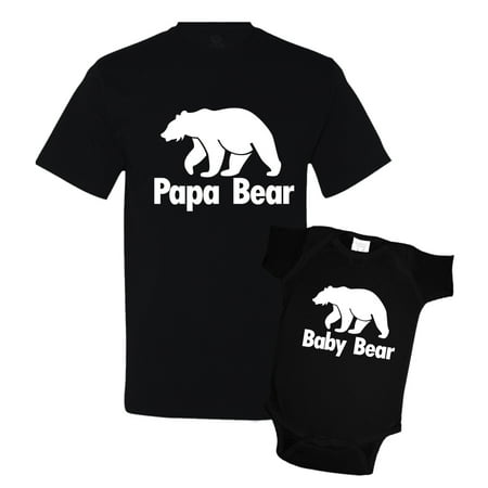 <b>Papa Bear and Baby Bear Matching Father Son Shirts from MintyTees</b>: <ul> <li>Papa Bear and Baby Bear T-Shirt/Bodysuit Set</li> <li>100% Pre-Shrunk Cotton</li> <li>Printed with waterbased eco friendly inks providing great durability</li> <li>Makes a great gift for Father's Day, Christmas, New Baby, or just for a really awesome photo opportunity</li> <li>All garments are proudly manufactured by Minty Tees, a trademark of Arenas Promotions LLC, and shipped from Covina, CA</li> </ul>