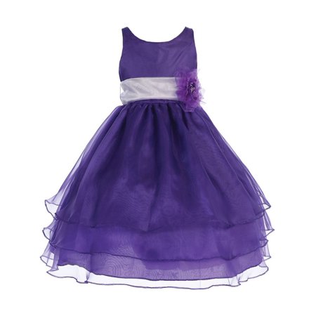 <ul> <li>This dress from Calla Collection USA comes with the right amount of whimsical and glamour</li> <li>Sleeveless purple organza dress</li> <li>Ivory removable sash and flower embellishment</li> <li>Made from 100% polyester</li> <li>Sizing is based on U.S. clothing size standards</li> </ul>