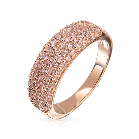 Bling Jewelry Rose Gold Plated 925 Sterling Silver Pink CZ Five Row Ring