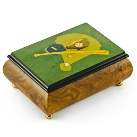 Sports Theme Wood Inlay: Baseball- Collectible 22 Note Musical Jewelry Box - Butterfly Kisses