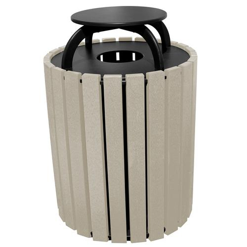 The large capacity 49 gallon receptacle can be used for trash or as part of a recycling station. Made in America of 100% post-consumer recycled plastic, it include an inner plastic liner and is available in seven (7) colors with a black top. Stainless steel fasteners ensure a rust resistance long life, and are internal to provide a clean, blemish-fee appearance. Keep your environment clean and keep plastic out of the landfill at the same time. Rain caps available. We've added flare to utility with our Round Flare Top Receptacle! The unique deign has an inner liner and 33 gallon capacity, and is made in America of 100% post-consumer recycled plastic. It's eco-friendly while helping keep trash/recyclables in their place. Limited Warranty: 15 years. Capacity (gallons): 49