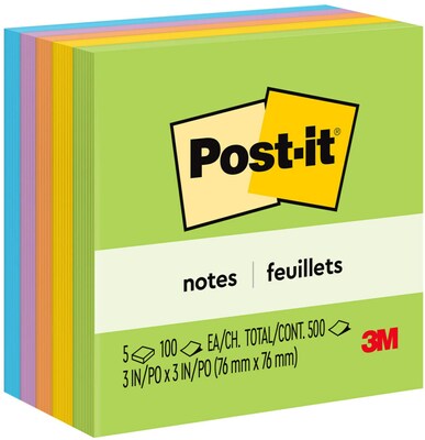 Post-it® Notes in Floral Fantasy Collection, Unlined, 3" x 3", Pad of 100 Sheets, Pack of 5 Pads | Grand & Toy