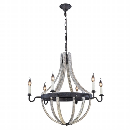 Elegant Lighting 1502D31IW Woodland Collection Pendant Lamp D31" H31" 6-Light, Grey