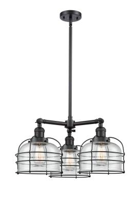 Innovations Lighting 207-BK-G74-CE Bell Cage - 3 Light Chandelier in Industrial Style-17 Inches Tall and 24 Inches Wide, Finish Color: Matte Black, Glass Color: Seedy