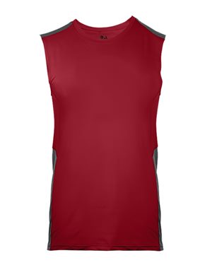 Badger B50285703 Line Embossed Sleeveless Fitted T-Shirt, Red & Graphite Line - Small