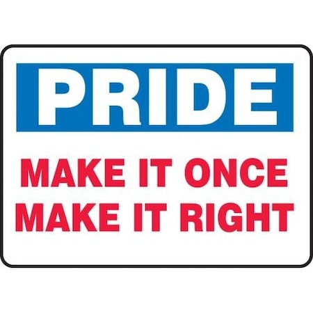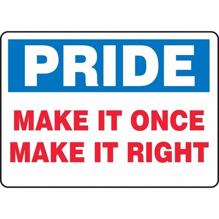 Accuform MQTL906VA Aluminum Sign, Legend "Pride Make IT Once Make IT Right", 7" Length x 10" Width, Blue/Red on White