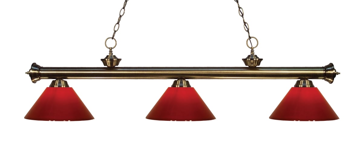 Z Lite 200-3AB-PRD 16 x 14 x 57 in. 60W Riviera 3 Light Billiard Light, Antique Brass & Red