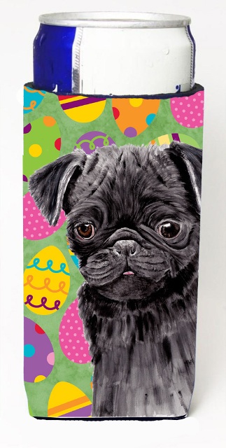 Caroline's Treasures SC9446MUK Pug Easter Eggtravaganza Ultra Hugger for slim cans Can Cooler Sleeve Hugger Machine Washable Drink Sleeve Hugger Collapsible Insulator Beverage Insulated Holder