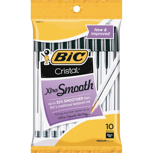 BIC Cristal Xtra Smooth Ballpoint Pen, Medium Point (1.0mm), Black, For Everyday Writing Activities, 10-Count