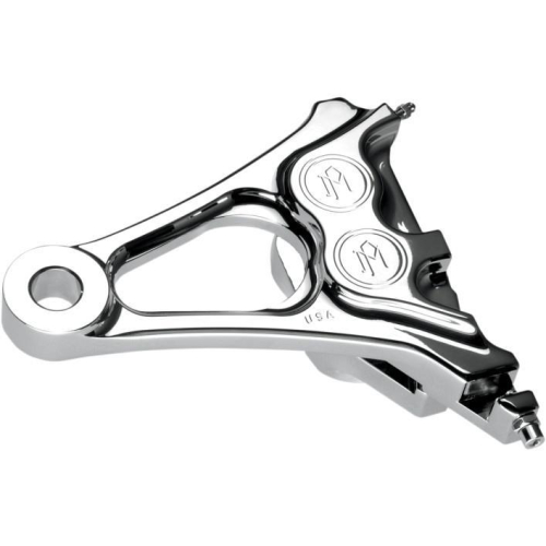 4-Piston Caliper - Rear - Chrome - 08-17 Softail<br/>Feature differential bore pistons that apply a different force at both the leading edge and the trailing edge of the pads to ensure superior braking<br/>Dual-disc applications require the separate purchase of a left and right front caliper<br/>Include brake pads, bleeder screw and 3/8"-24 banjo bolt<br/>Made in the U.S.A.<br/>Calipers listed for 00-03 XL models will fit 04-13 XL models if used with a 9/16" bore master cylinder.<br/>Will not fit FXD, FXR, XL models with spoke wheels.