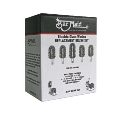 Bar Maid's glass washer universal replacement slotted brush set fits all brands except Waring (all sold separatly).Includes:- Four6" brushes-One 6-3/4" brush
