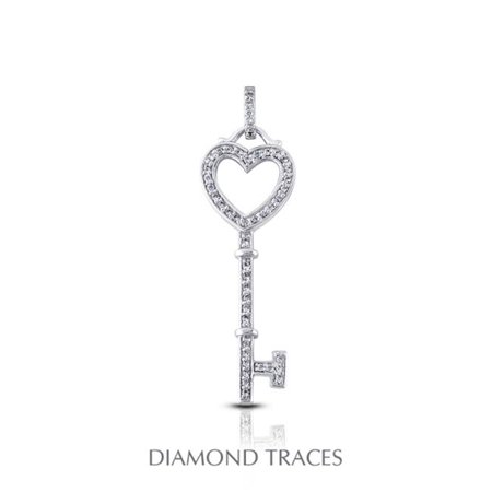 <p>This beautiful 18k white gold key pendant features 47 round diamonds with a total weight of 0.37 carat. The diamonds are certified by AGI Laboratories as a 100% Natural Diamond H color, SI2 clarity, and with Excellent cut. To emphasize the true fire and brilliance of the diamonds, our master jeweler chose prong setting method. </p> <b>Features</b> <ul> <li>0.37 Carat Total Natural Diamonds</li> <li>18K White Gold Prong Setting</li> <li>Key Fashion Pendant</li> </ul> <b>Specifications</b> <ul> <li><b>Weight:</b> 0.002 lbs</li> <li><b>Dimension:</b> 0.31 x 0.76 x 0.05 in. </li> </ul>- SKU: DMTD2397