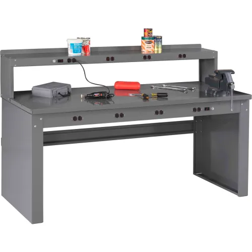 Tennsco Panel Leg Workbench, 72 x 30", Riser & 8 Power Outlets, Steel Square Edge