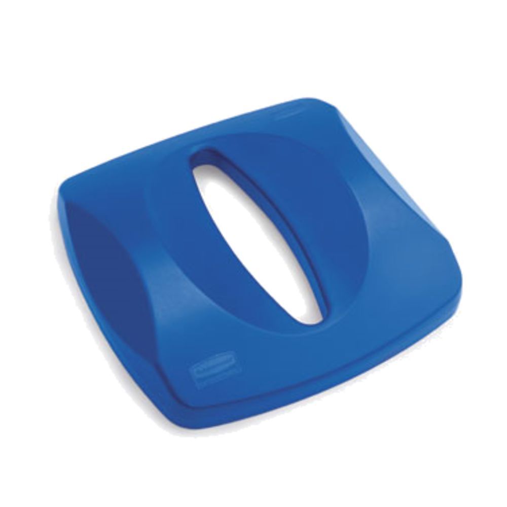 Hygienic lid is designed for feeding paper into Rubbermaid Square Recycling Centers (sold separately). Large opening is perfect for hands-free disposal. Lid is made of plastic.Features: *Rubbermaid Commercial Products Rubbermaid Commercial Products Paper Recycling Lid, 16"X16"X3-1/4", Blue *Cleaning Breakroom RecycledYPost Consumer Content30%