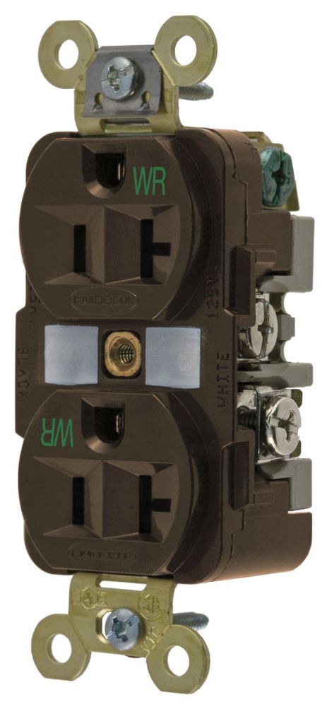 Hubbell HBL5362WR Weather Resistant Receptacle, Duplex, Straight Blade, HD Specification, 20 amp, 125V, Brown