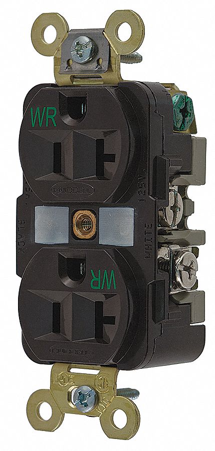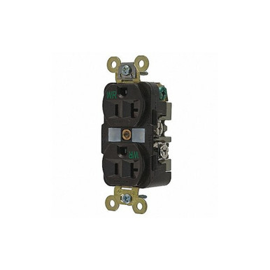 Straight-Blade 2-Pole, 3-Wire ReceptaclesHBL Extra Heavy-Duty Industrial Series Superior impact resistance Circuit identification Reduced heat buildup Low resistance to ground path<br /><br /> Item: Receptacle<br /> Type - Plugs and Receptacles: Straight Blade<br /> Application Environment: Heavy Use Industrial/Harsh Environments<br /> Amps - Plugs and Receptacles: 20<br /> NEMA Receptacle Configuration - Plugs and Receptacles: 5-20R<br /> Voltage - Plugs and Receptacles: 125VAC<br /> Number of Poles: 2<br /> Number of Wires: 3<br /> Tamper Resistant: No<br /> Weather Resistant - Plugs and Receptacles: Yes<br /> Outlet Type - Plugs and Receptacles: Standard Duplex<br /> Mounting Type - Plugs and Receptacles: Flush<br /> Color - Plugs and Receptacles: Brown<br /> Item - Plugs and Receptacles: Receptacle<br /> Wiring Method - Plugs and Receptacles: Back and Side<br /> Surge Suppression: No<br /> Material: Nylon/Reinforced PET<br /> Phase: 1<br /> HP: 1.0<br /> Corrosion Resistant: No<br /> Number of Gangs: 1<br /> Description: Finder Groove, Grounding