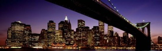 Panoramic Images PPI68949L Night Brooklyn Bridge Skyline New York City NY USA Poster Print by Panoramic Images - 36 x 12