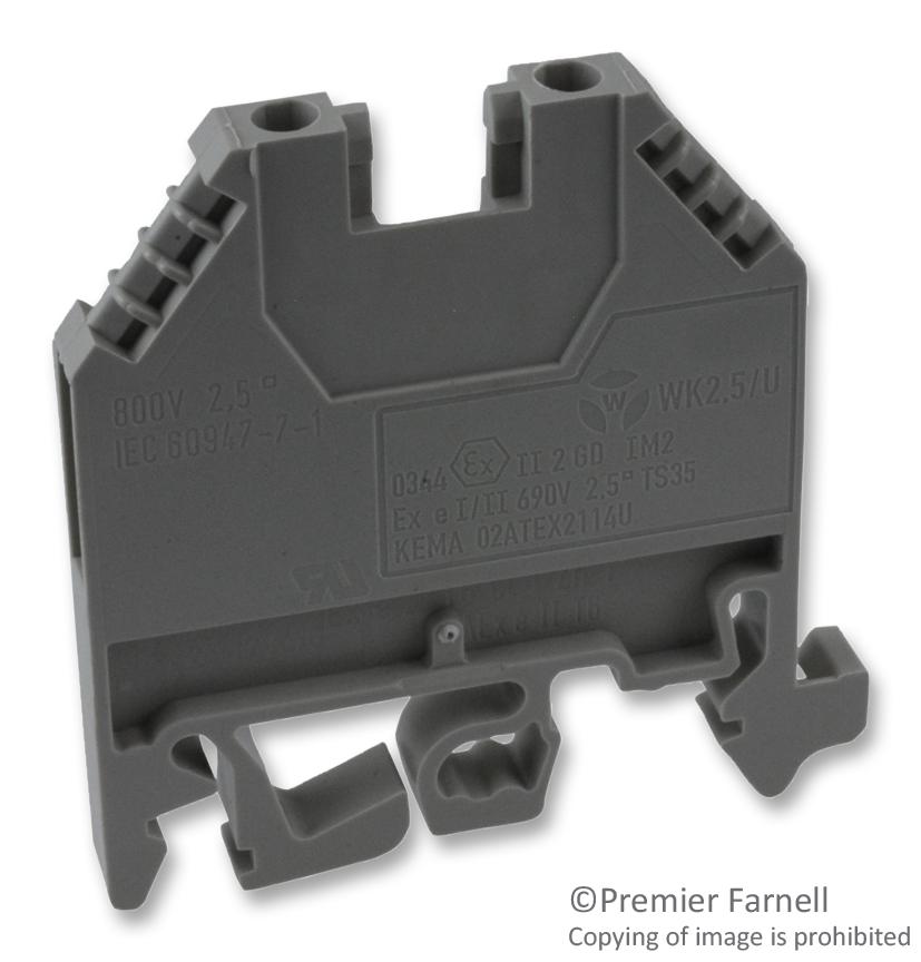 - <b>Price For:</b> Pack of 1<b>Order Unit:</b> Each 1 <b>Approvals / Standards:</b>: - <b>Conductor Area CSA:</b>: 4 <b>Connector Type:</b>: DIN Terminal Block <b>Contact Material:</b>: Brass <b>No. of Levels:</b>: 1 <b>No. of Positions:</b>: 2 <b>Rated Current:</b>: 24 <b>Rated Voltage:</b>: 800 <b>SVHC:</b>: No SVHC (17-Dec-2014) <b>Series:</b>: WK <b>Wire Connection Method:</b>: Screw <b>Wire Size AWG Max:</b>: 12 <b>Wire Size AWG Min:</b>: 22