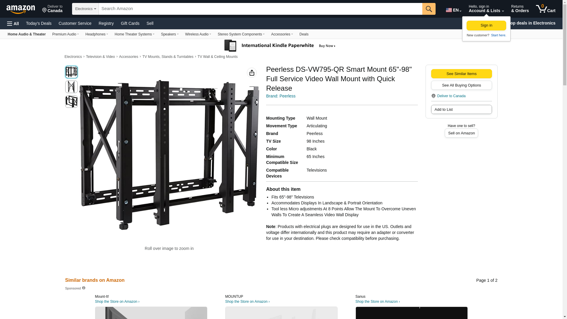 Peerless DS-VW795-QR Smart Mount 65"-98" Full Service Video Wall Mount with Quick Release