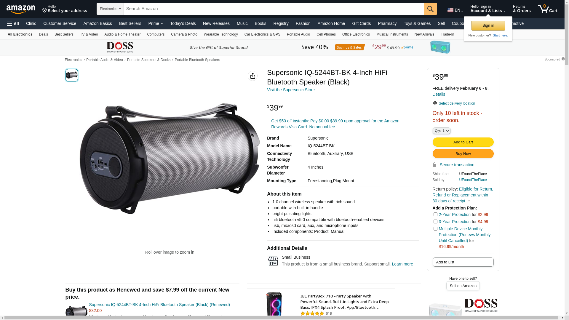 Supersonic IQ-5244BT-BK 4-Inch HiFi Bluetooth Speaker (Black)