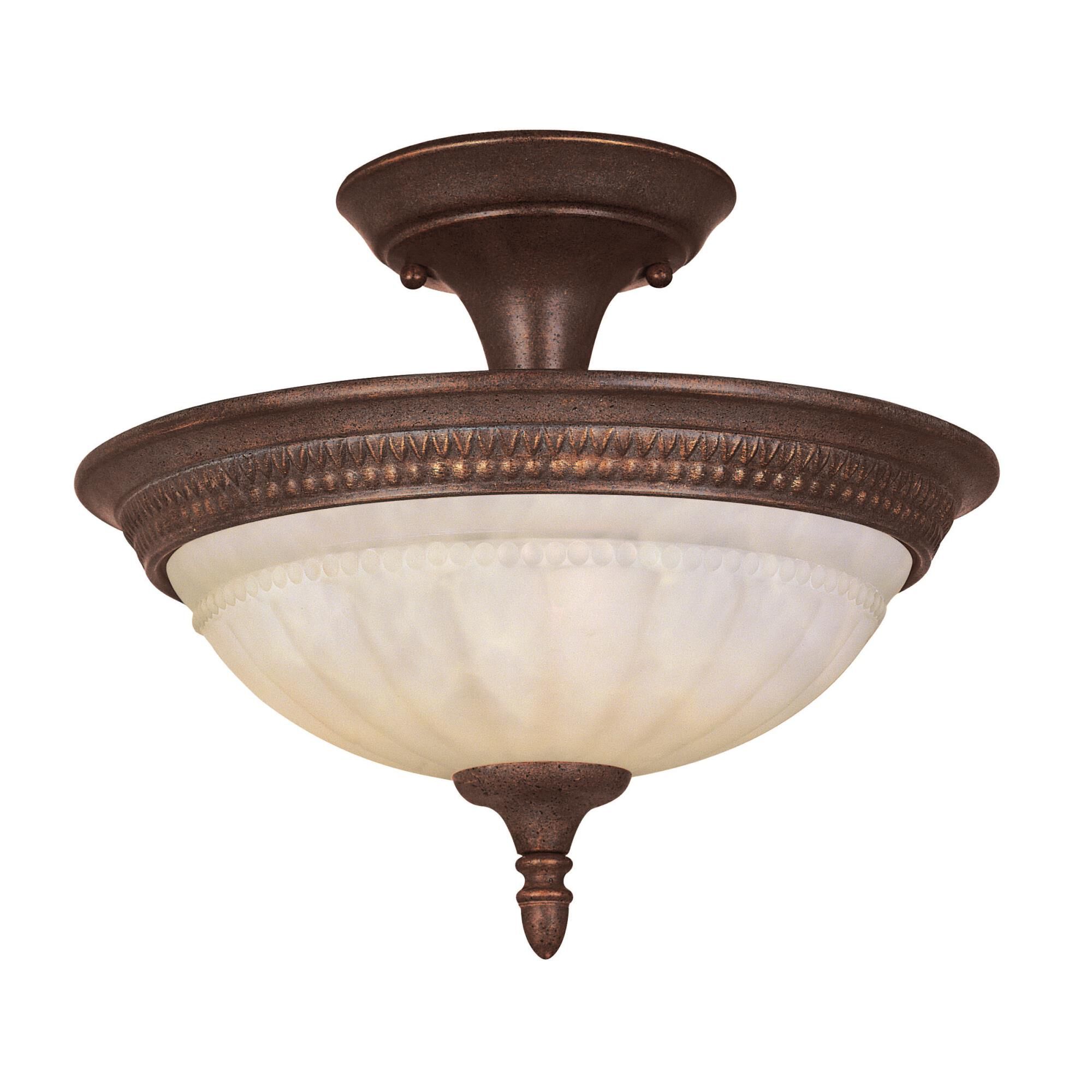 | Feature | This Semi-Flush is finished in Walnut Patina |