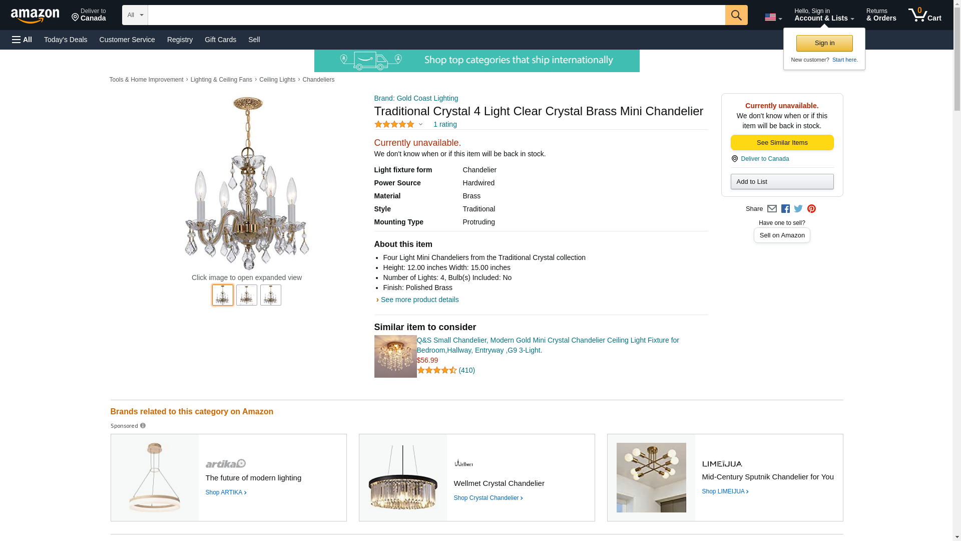 Gold Coast Lighting Traditional Crystal 4 Light Clear Crystal Brass Mini Chandelier