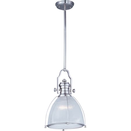 Maxim 25003CLSN Hi-Bay Industrial Clear Halophane Glass Pendant Ceiling Light, 1-Light 60 Watt, 20" H x 14" W, Satin Nickel