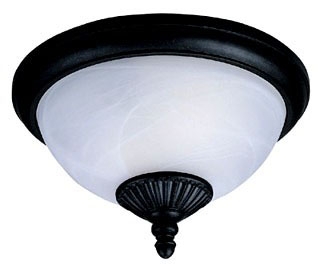 88048-185 Bulb Type: 60W Medium Features: -Outdoor flush mount.-Number of lights: 2.-Material: Die cast aluminum.-Swirled marbleize glass.-Key slots connector.-Energy saving.-Energy star.-CUL, UL, ETL and CETL damp location. Includes: -Bulb type: 60W Medium base or 13W GU24 self ballasted fluorescent bulb (included). Color/Finish: -Forged iron finish. Dimensions: -Wire length: 6.5".-Overall dimensions: 7.5" H x 13.25" W. Collection: -Yorktown collection.