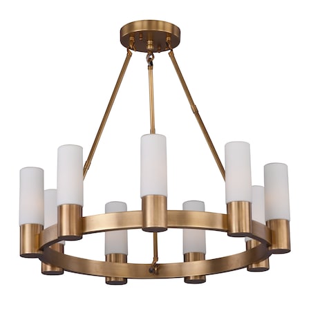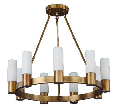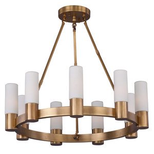 Maxim 22418SWNAB Contessa Modern Opal Satin White Glass Cylinder Round Chandelier, 9-Light 360 Total Watts, 24" H x 27" W, Natural Aged Brass